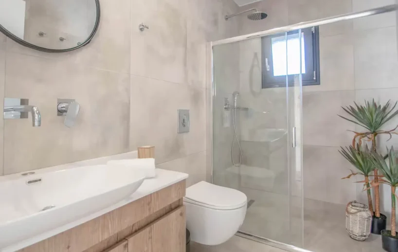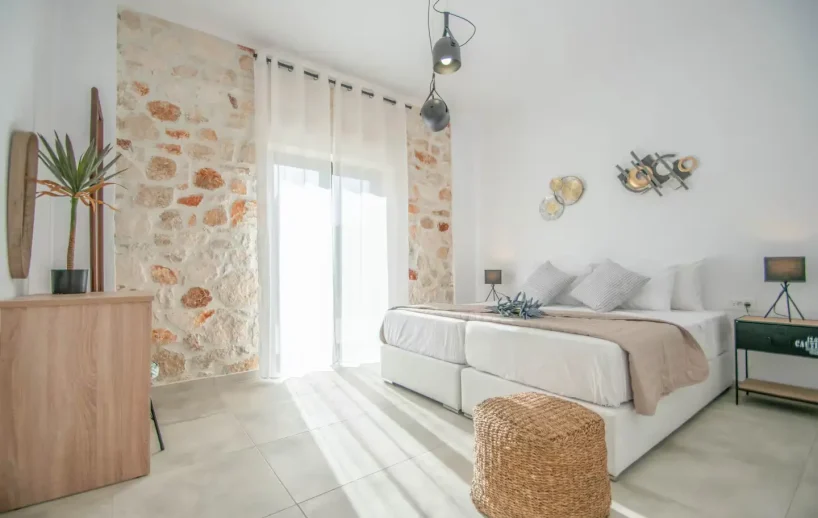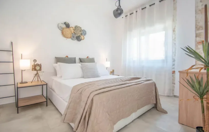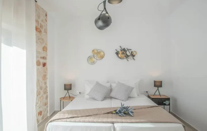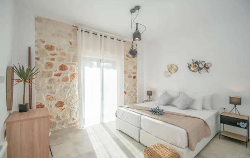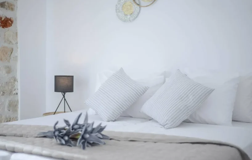 Τα υπνοδωμάτια αποπνέουν ηρεμία και θαλπωρή, διακοσμημένα σε απαλούς τόνους και φυσικές υφές, με ποιοτικά λευκά είδη και αφράτα μαξιλάρια που εξασφαλίζουν ξεκούραστο ύπνο. Τα κομψά μπάνια, με ντους βροχής walk-in, σύγχρονες παροχές και διακριτικές λεπτομέρειες, προσφέρουν μια αίσθηση spa που ενισχύει την πολυτέλεια.